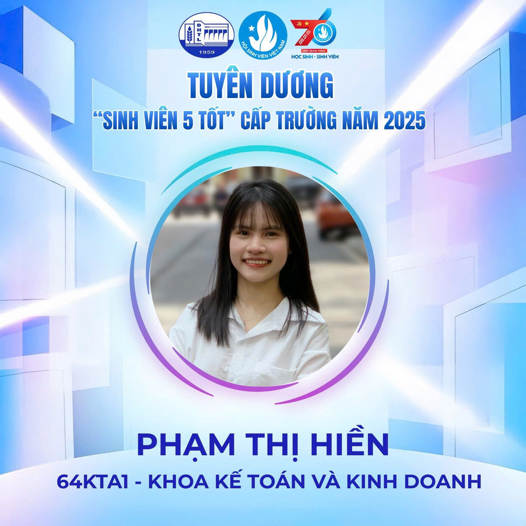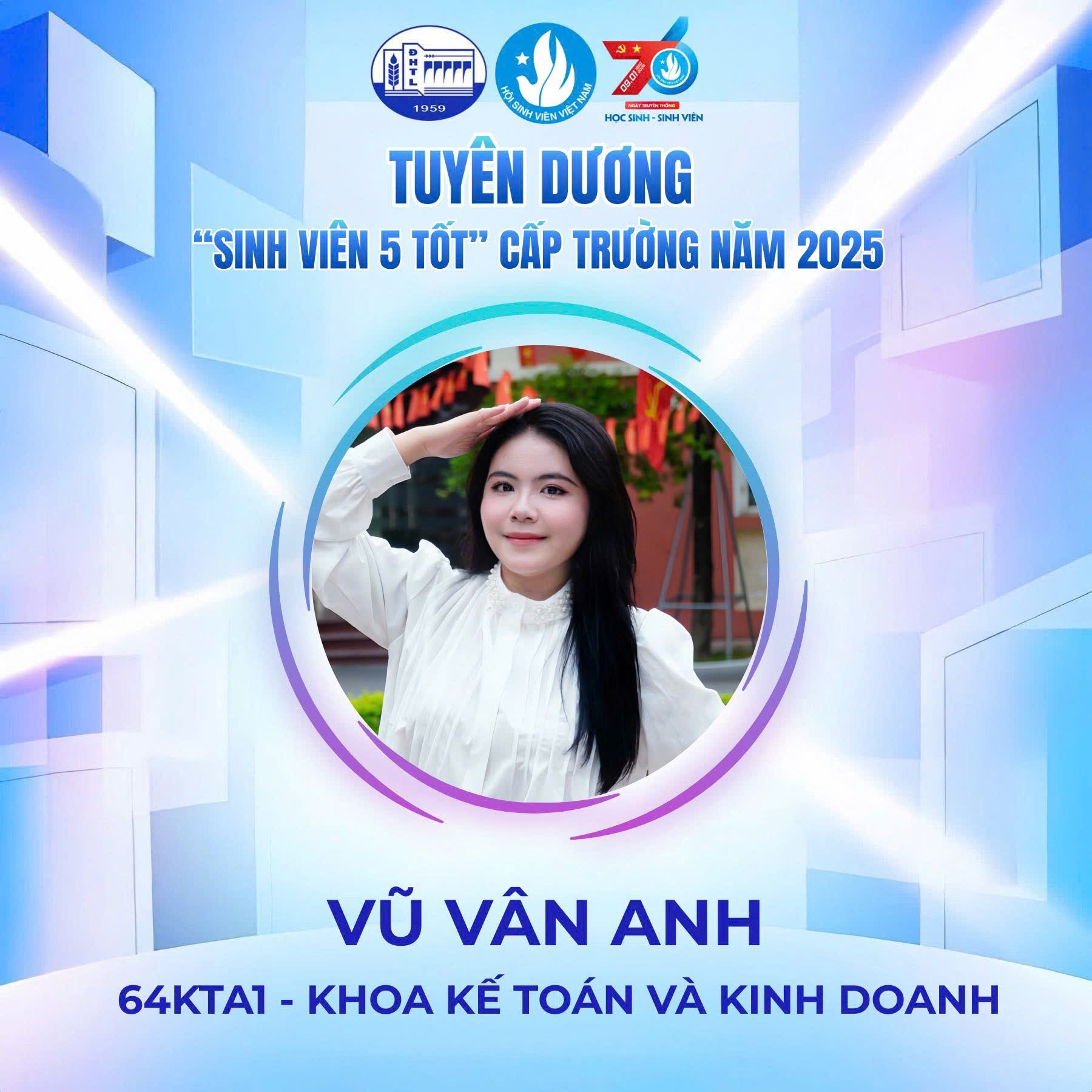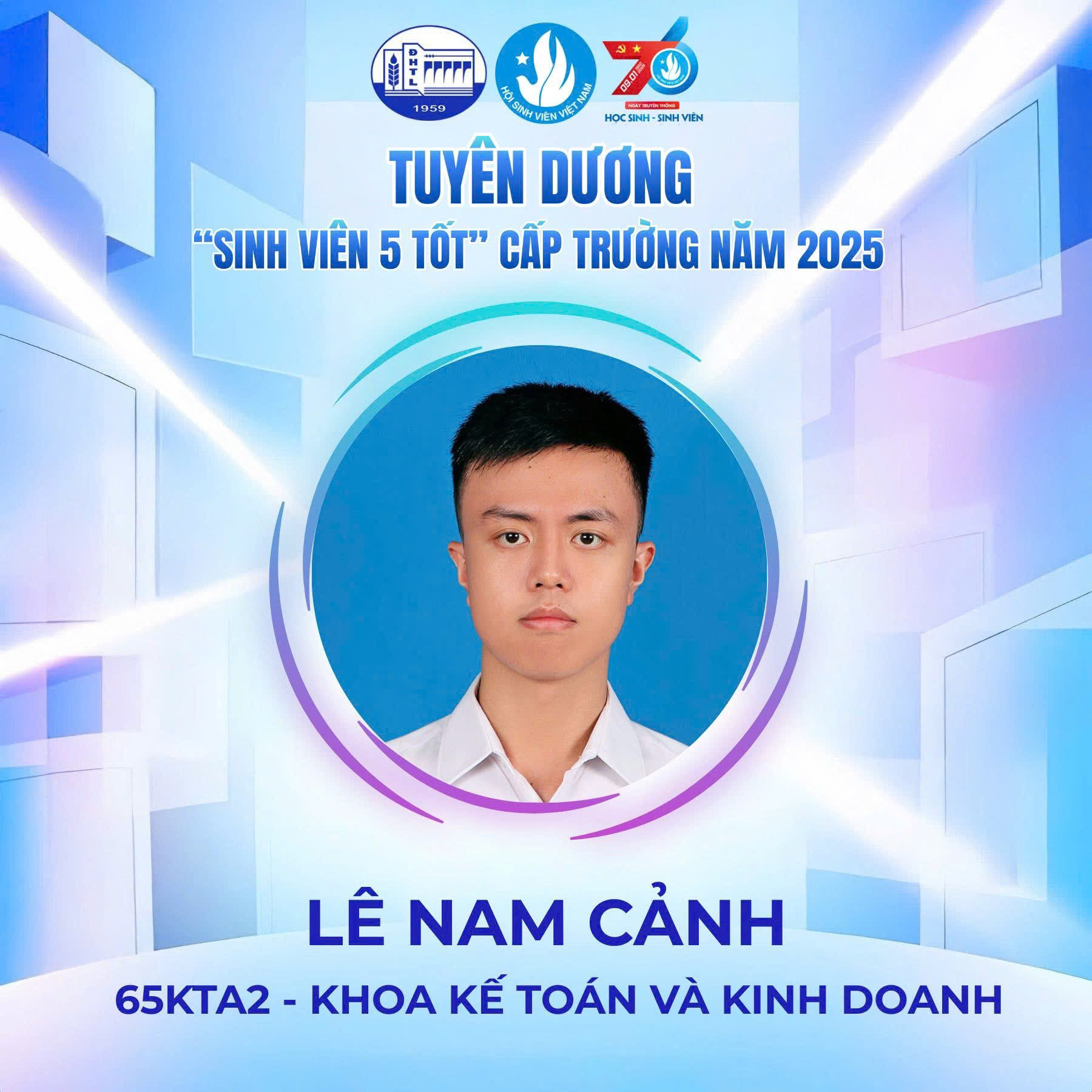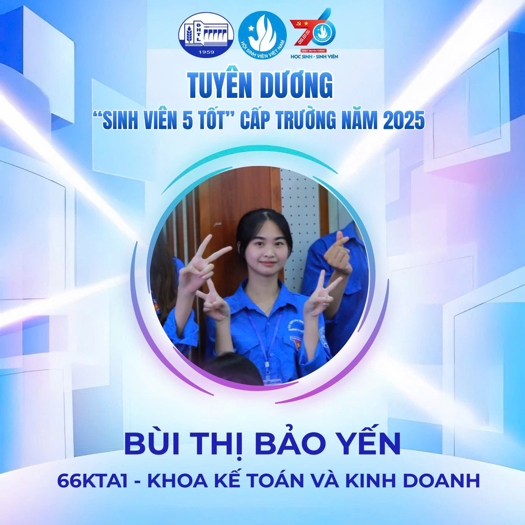 Danh hiệu “Sinh viên 5 tốt” là sự ghi nhận xứng đáng cho quá trình học tập nghiêm túc, tinh thần rèn luyện bền bỉ và ý thức chủ động tham gia các hoạt động học thuật, phong trào của sinh viên Ngành Kiểm toán. Đây không chỉ là kết quả của sự nỗ lực cá nhân mà còn thể hiện môi trường đào tạo năng động, toàn diện của Khoa Kế toán và Kinh doanh.
