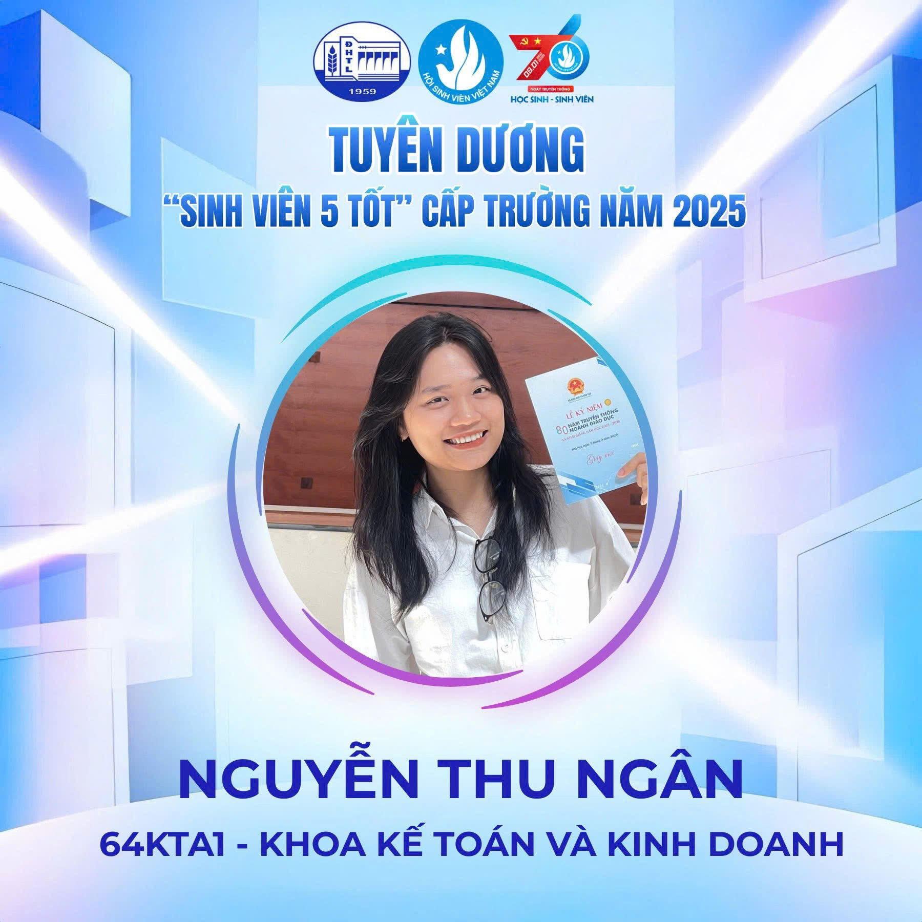 Năm 2026, sinh viên Ngành Kiểm toán – Khoa Kế toán và Kinh doanh, Trường Đại học Thủy lợi tiếp tục ghi dấu ấn bằng những thành tích đáng tự hào khi vinh dự có các sinh viên đạt danh hiệu “Sinh viên 5 tốt” cấp Trường.
