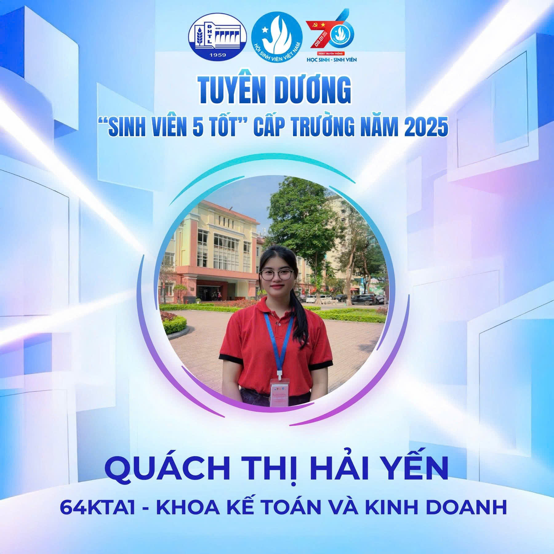 Danh hiệu “Sinh viên 5 tốt” cấp Trường năm 2026 sẽ là dấu mốc ý nghĩa, tiếp thêm niềm tin và động lực để các bạn sinh viên Ngành Kiểm toán tiếp tục nỗ lực học tập, phát triển kỹ năng và vững bước trên con đường học tập cũng như sự nghiệp trong tương lai.