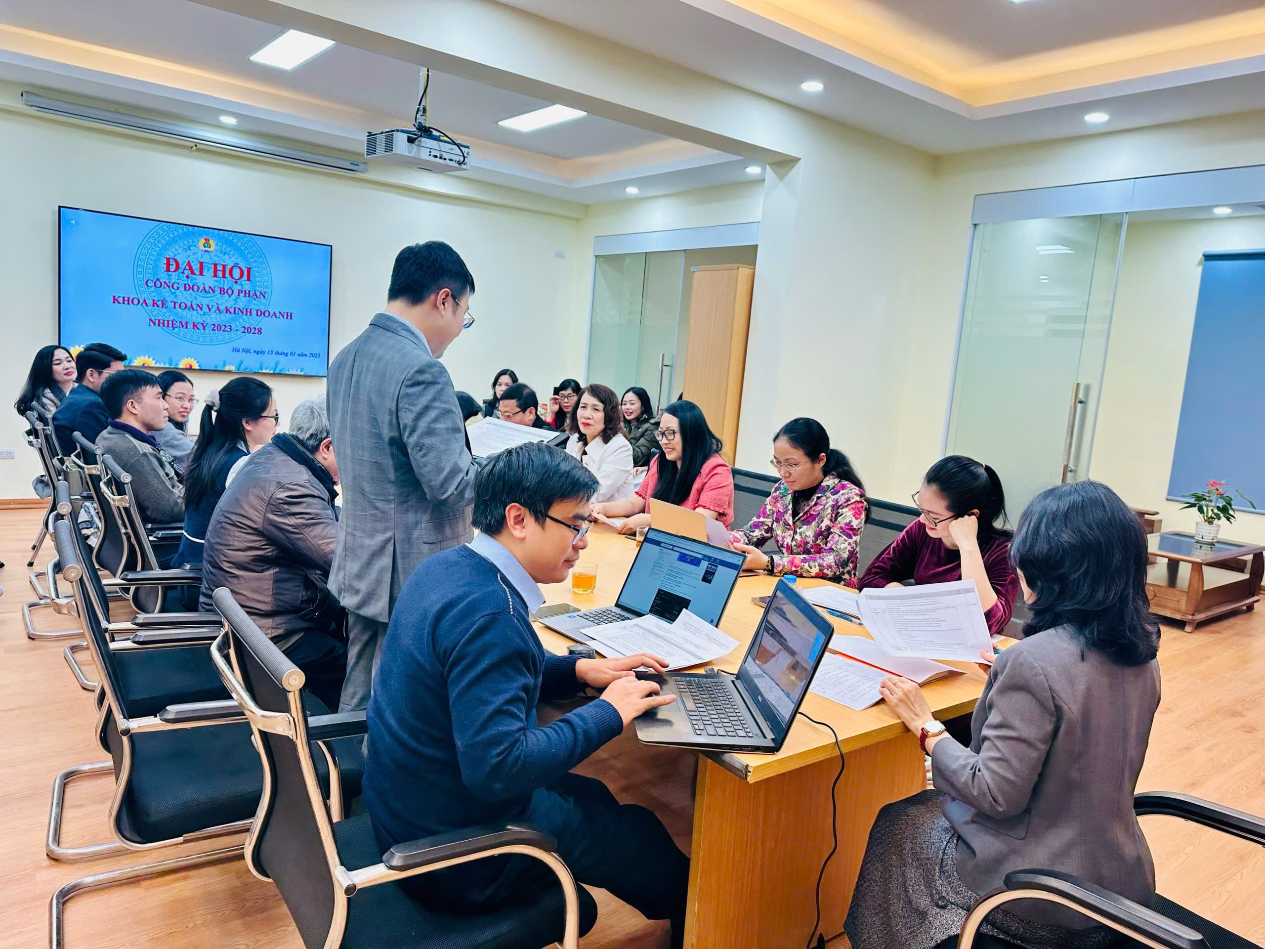 Ngày 15/01/2025, Đại hội Công đoàn Khoa Kế toán và Kinh doanh nhiệm kỳ 2023-2028 đã diễn ra thành công với sự tham gia của đông đảo công đoàn viên trong khoa. Đây là sự kiện trọng đại, đánh dấu bước phát triển mới trong công tác Công đoàn và sự đoàn kết, gắn bó của tập thể Khoa Kế toán và Kinh doanh.