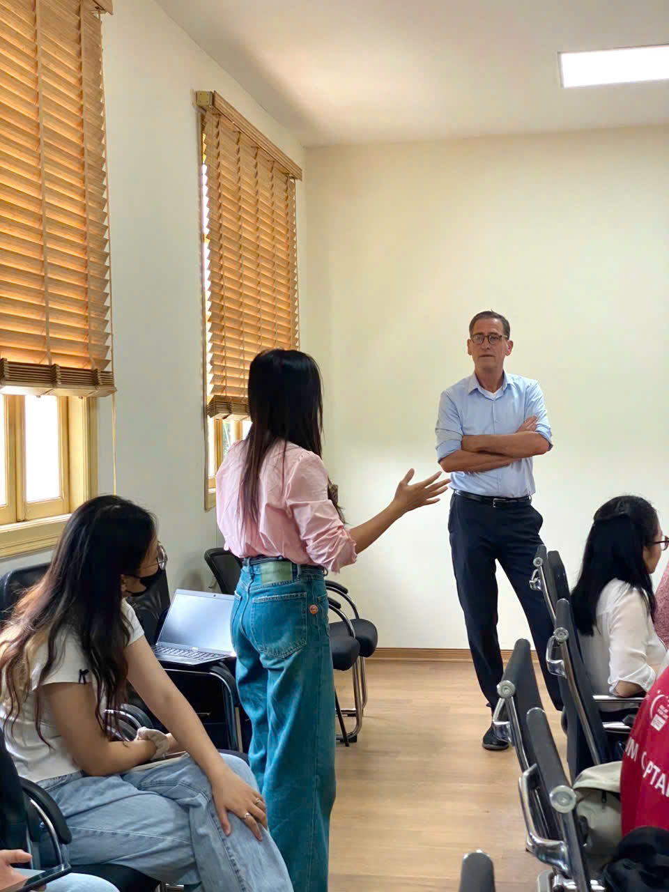 Sau phần thuyết trình, ông Anthony đã tham gia vào phiên thảo luận sôi nổi với người tham dự, giải đáp các thắc mắc và chia sẻ thêm về vai trò của AI trong việc định hình tương lai ngành tài chính. Ngoài ra, ông cũng đã giao các bài tập thực hành cho sinh viên, khuyến khích họ khám phá các ứng dụng AI trong tài chính, từ đó nâng cao khả năng học tập cả về lý thuyết lẫn thực tiễn. Các nhóm sinh viên đã được trình bày ý tưởng về một dự án đầu tư giả định một cách hào hứng và sôi nổi. Buổi hội thảo đã mang đến cơ hội tuyệt vời cho sinh viên để tiếp thu kiến thức và hiểu biết sâu rộng về sự giao thoa giữa công nghệ và tài chính, giúp họ chuẩn bị tốt hơn cho những thay đổi nhanh chóng trong ngành.